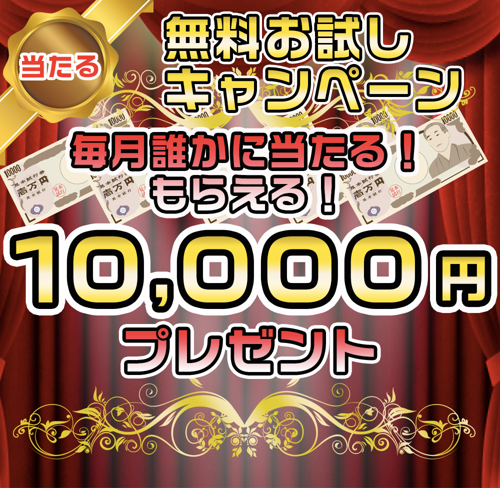 毎月誰かに当たる!もらえる!なんと現金10,000円を特別プレゼント中!お急ぎ下さい!